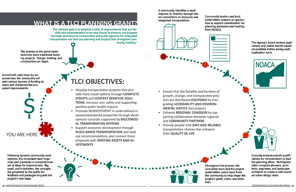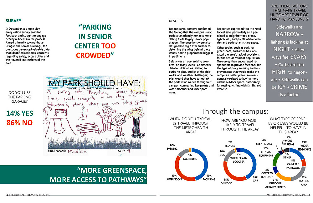 for the presently auto-centric Devonshire Road and radiated outward, evaluating MetroHealth’s greater connection to the