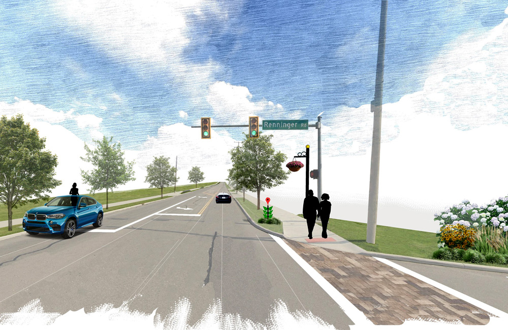 Boulevard Studios served as a subconsultant to the planning lead on this comprehensive plan update for the City of New Franklin, Ohio. Tasked with concept development and visualization, the firm was in attendance at each community and stakeholder meeting where listening and documenting resident ideas and concerns was crucial to developing a slate of initiatives for improving the city’s connectivity, green spaces, and commercial centers. A series of renderings for the report illustrate how bikeways, streetscape improvements, and more flexible use of existing parks can be applied city-wide to make New Franklin more accessible to its younger residents while preserving the rural character so cherished by those who have lived there for decades.
